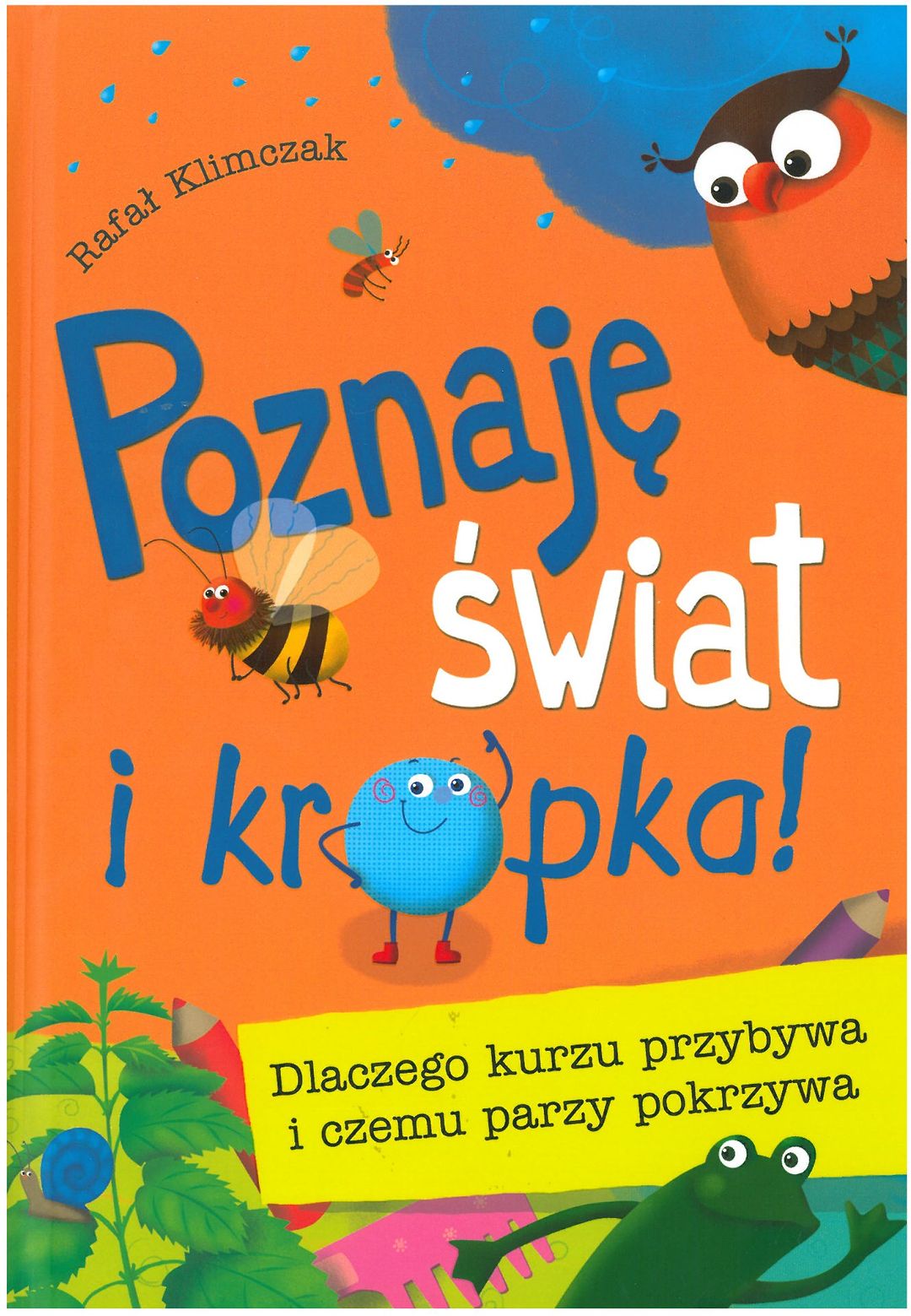 Kropka, która na dobre zadomowiła się w pokoju Asi, zadaje mnóstwo pytań, na przykład skąd biorą się włosy i jak powstaje kurz. Ciekawi ją, dlaczego niebo jest błękitne i w jaki sposób deszcz dostaje się do chmur. Podczas pierwszego spaceru w parku dowiaduje się też, do czego służą różne zioła i co takiego parzy w pokrzywie. Rafał Klimczak, autor bestsellerowej serii Nudzimisie, w bardzo przystępny sposób opowiada o zjawiskach przyrodniczych i innych ciekawostkach, a kolorowe ilustracje Ilony Brydak wspaniale dopełniają całości. To idealna propozycja dla najbardziej dociekliwych małych odkrywców! [nota wydawcy]