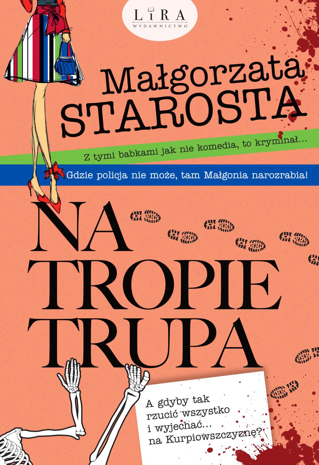 A gdyby tak rzucić wszystko i wyjechać… na Kurpiowszczyznę? Małgorzata Starosta, autorka komedii kryminalnych, postanawia odwiedzić ukochany skansen kurpiowski w Nowogrodzie, aby złapać oddech i znaleźć wenę do napisania romansu historycznego. Jednak cały plan bierze w łeb, gdy przypadkiem staje się świadkiem podejrzanych zakopków, dyrektorka skansenu znika bez śladu, a Barbs wysyła Małgonię na komisariat w celu zgłoszenia zaginięcia szemranego typa. Sensacyjne zwroty akcji, intryga zaplątana jak sznur bursztynowych korali, kurpiowskie klimaty i opowieści pani Jolinki to tylko wierzchołek tego, co kryje się w tej przezabawnej, znakomitej komedii kryminalnej, w której trop trupa to jedynie początek dobrej zabawy [opis wydawcy].