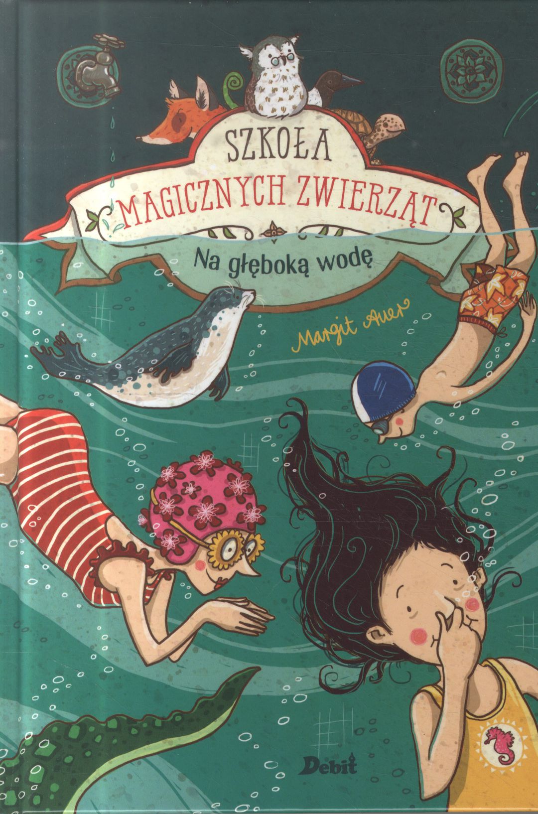 Lato, słońce, basen! Uczniowie z klasy panny Cornfield wraz ze swoimi magicznymi zwierzętami beztrosko pluskają się w wodzie. Wszyscy – prócz Hatice. Czy dziewczynka zda kiedykolwiek egzamin na odznakę „Już pływam”? Henry ma już dość wiecznych kłótni z rodzicami. Ucieka z domu i stara się jakoś przetrwać w lesie. Wtedy niespodziewanie nadchodzi pomoc. Plusk! Witaj, przygodo!