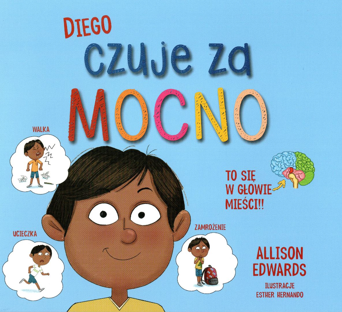 Regulacja emocji jest ważna. Ale może być trudna, kiedy myślimy o sobie źle i nie rozumiemy tego, co tak naprawdę się dzieje w naszym mózgu i umyśle. A dzieje się dużo! Wszystko za sprawą orzeszka, który znalazł dla siebie miejsce w każdej małej i dużej głowie. Ta wspaniała pomoc została stworzona z myślą o dzieciach, które czują emocje całym sobą: stresują się, martwią, wpadają w złość albo paraliżujące poczucie winy czy smutku. Rekomendujemy ją również dzieciom, które obawiają się wizyty u lekarza czy psychologa albo po prostu ciekawskim, którzy chcą poznać podstawy neurobiologii emocji. Warto bowiem wiedzieć, że kiedy czujemy się zagrożeni, zestresowani albo przytłoczeni emocjami, nasz mózg przełącza się w jeden z trzech trybów alarmowych: walka, ucieczka, zamrożenie. Niektórzy ludzie miewają napady złości, inni kłamią i zamykają się w sobie albo odczuwają silny lęk z objawami psychosomatycznymi. To nie zła wola ani świadome postępowanie. Biologicznie dowiedziono, że kiedy jesteśmy w stresie, nasz umysł doświadcza stanu, który można porównać do powodzi... Na przykład Diego nie radzi sobie z emocjami, zwłaszcza ze stresem i złością. Przez to myśli o sobie źle i wpędza się w poczucie winy. Rodzice wysyłają go do psychologa. Doktor B. opowiada mu o Czerwonych Rycerzach i zestresowanym orzeszku w jego mózgu. Z pomocą metafory tłumaczy mu neurobiologiczne procesy i niewidzialną powódź, która rozlewa się w jego umyśle. Dzięki temu Diego przestaje wierzyć w to, że jest złym dzieckiem. Wystarczy, że nauczy się kilku metod uspokajania zestresowanego orzeszka i zostanie dowódcą Czerwonych Rycerzy. Wtedy zacznie podejmować lepsze decyzje. Do książki dołączone są cyfrowe karty pracy i odpoczynku, które uczą regulacji emocji. Książki Allison Edwards nie tylko edukują, przede wszystkim zaszczepiają w dziecku wiarę w siebie i miłość do siebie. "Diego czuje za mocno" jest bajką popularnonaukową i materiałem profilaktycznym opartym na książce dla dorosłych "Trafiony, zatopiony".